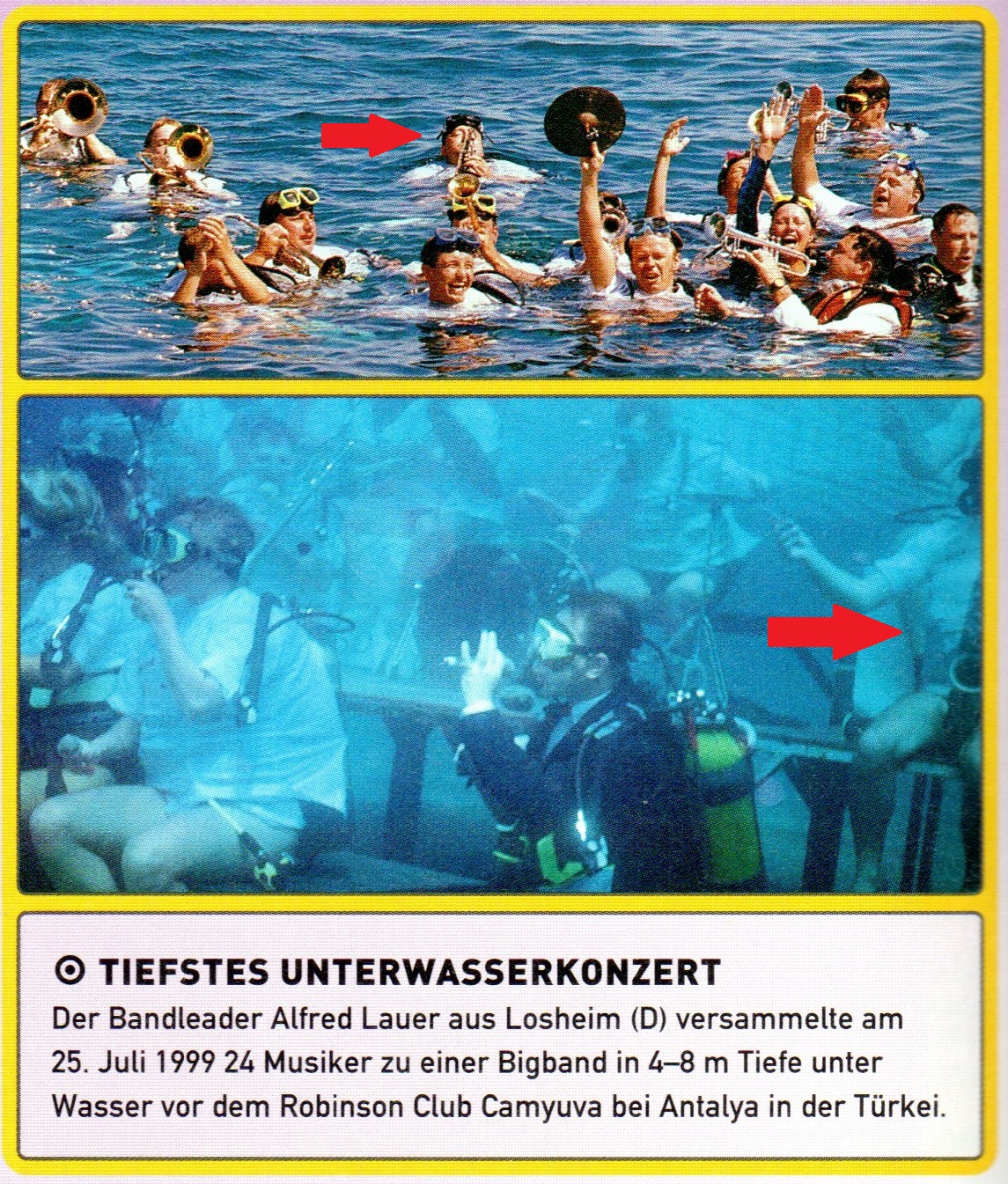 • Es ist eine der verrücktesten Aktionen, die ich im Clubtourismus kennenlernen durfte. Die sehr professionelle Alfred Lauer Big Band geht mit im Jahr 1999 mit 25 Musikern im Robinson Club Camyuva unter Wasser und spielt auf 8-10 Meter Tiefe „New York-New York“. Wir sprechen mit einem Musiker der Band, dem Musikproduzenten Thilo Berg, der damals am Schlagzeug spielte (natürlich auch unter Wasser).